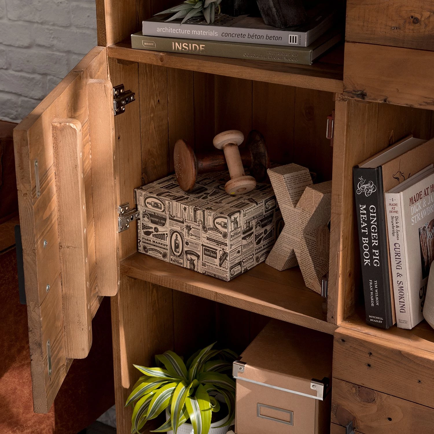 - Façade et corps : pin recyclé verni