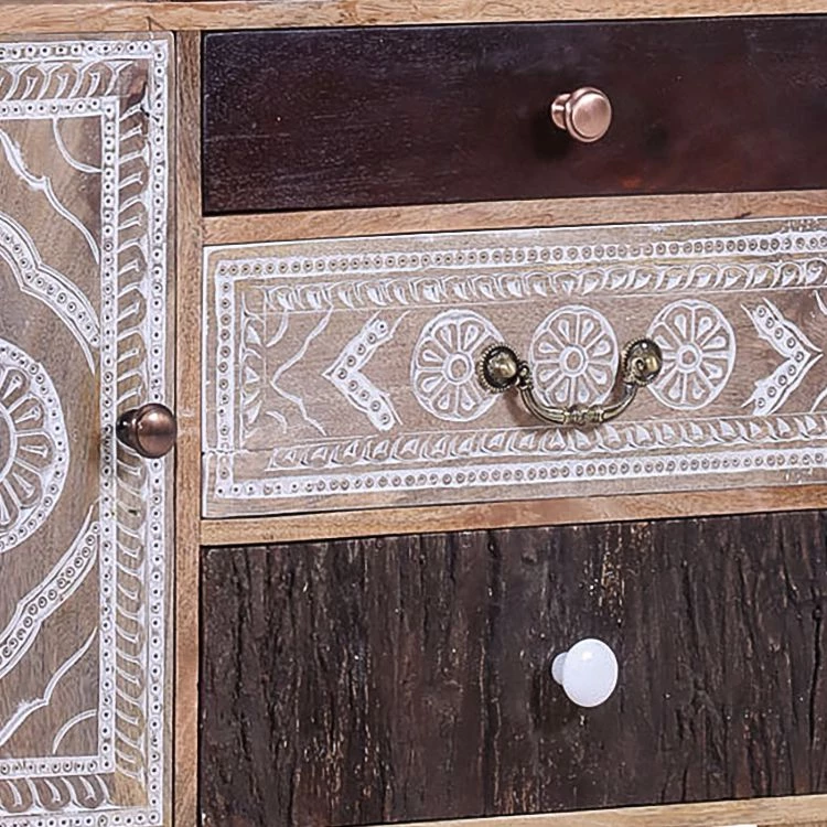 - Bois utilisé : manguier massif et panneau MDF de bois mélangé