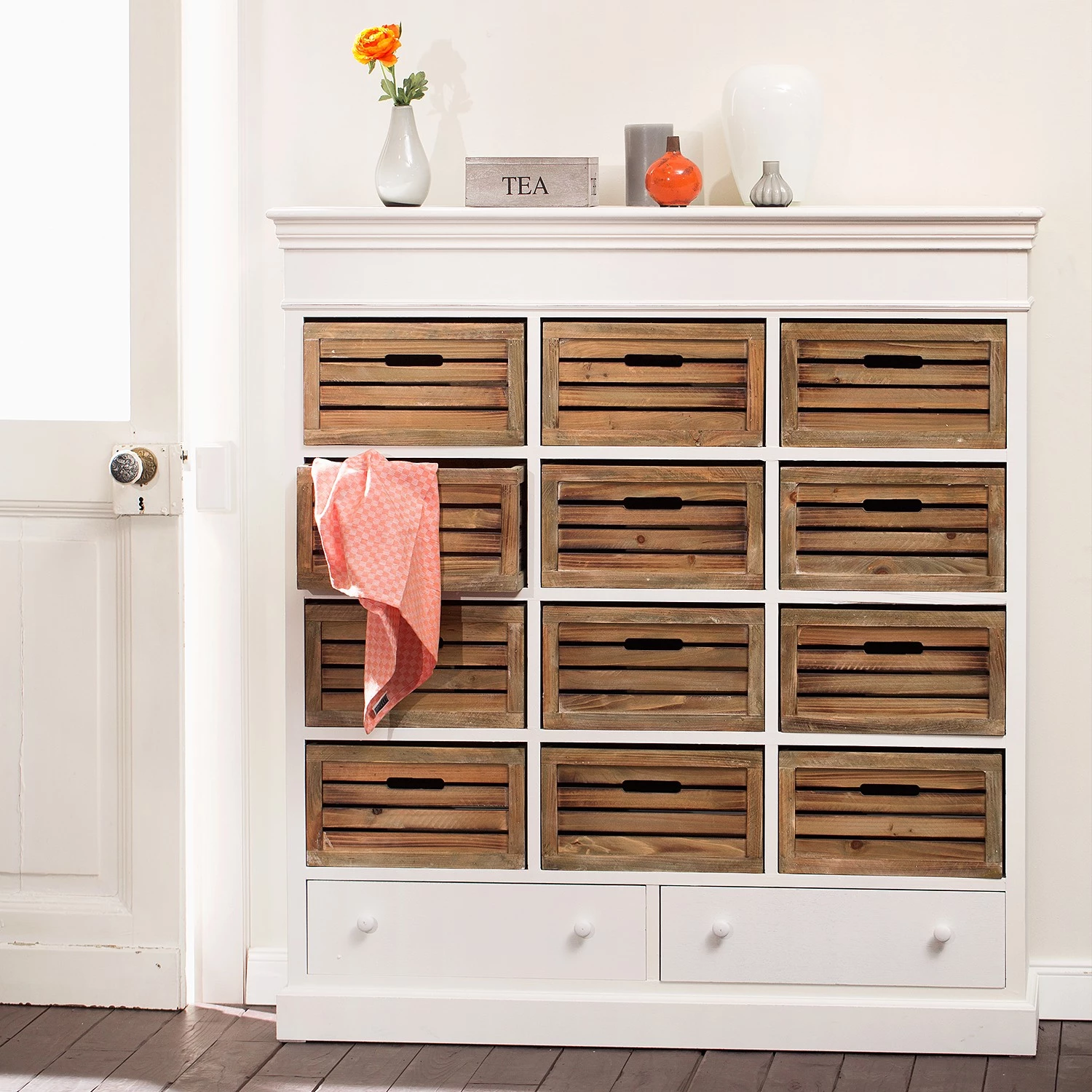- Contenu de la livraison : Étagère CAMPAGNE avec 14 tiroirs, blanc