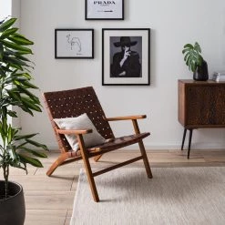 Ars manufacti Fauteuil design Bourbourg – Cuir tressé / Teck massif – marron cognac / Teck