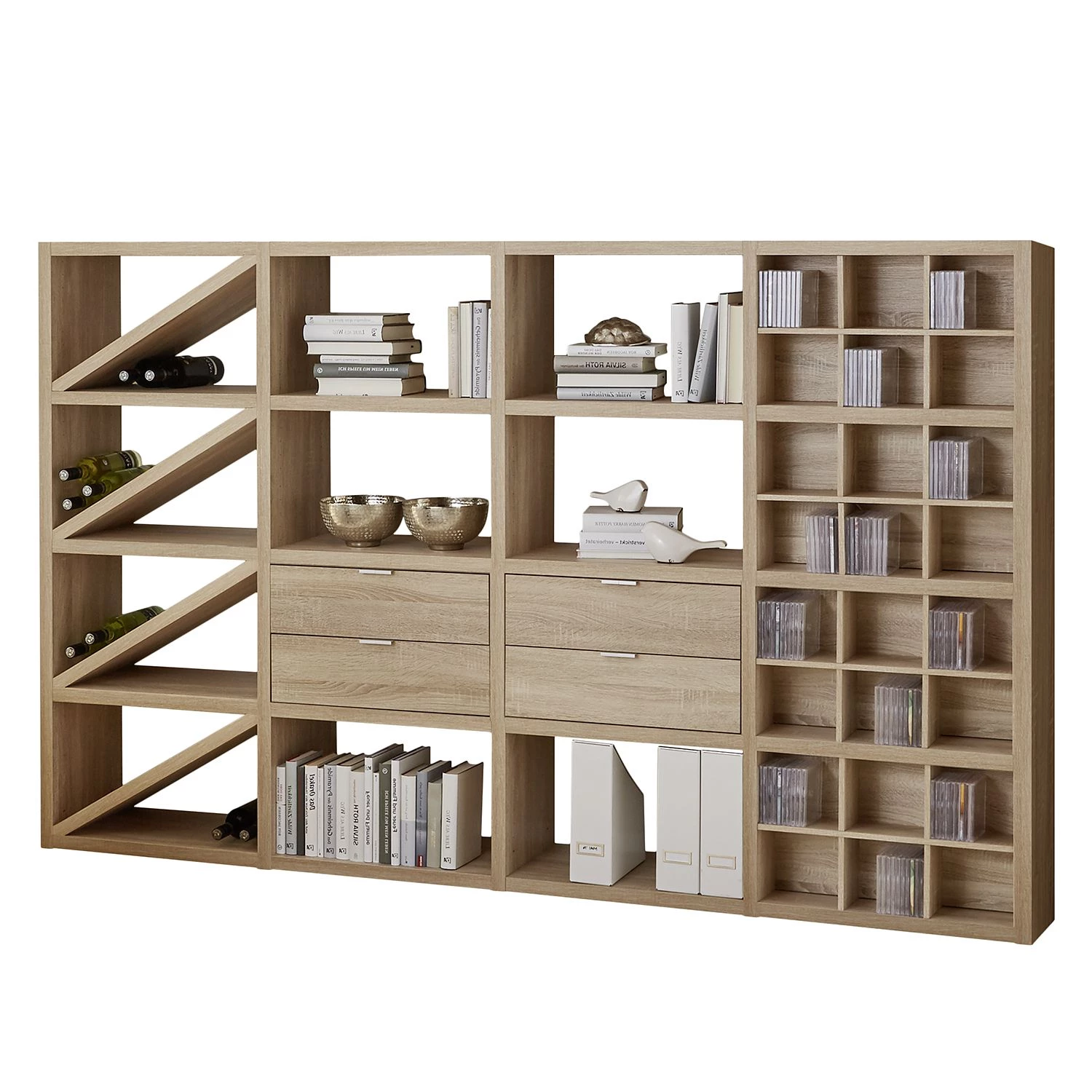 - 4 tablettes obliques et 4 compartiments à CD avec chacun 6 compartiments