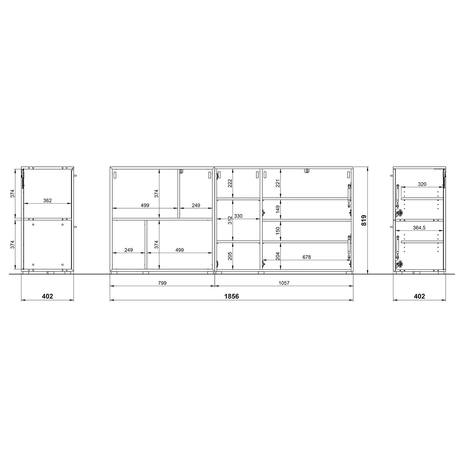 - Charge maximale des étagères : 10 kg