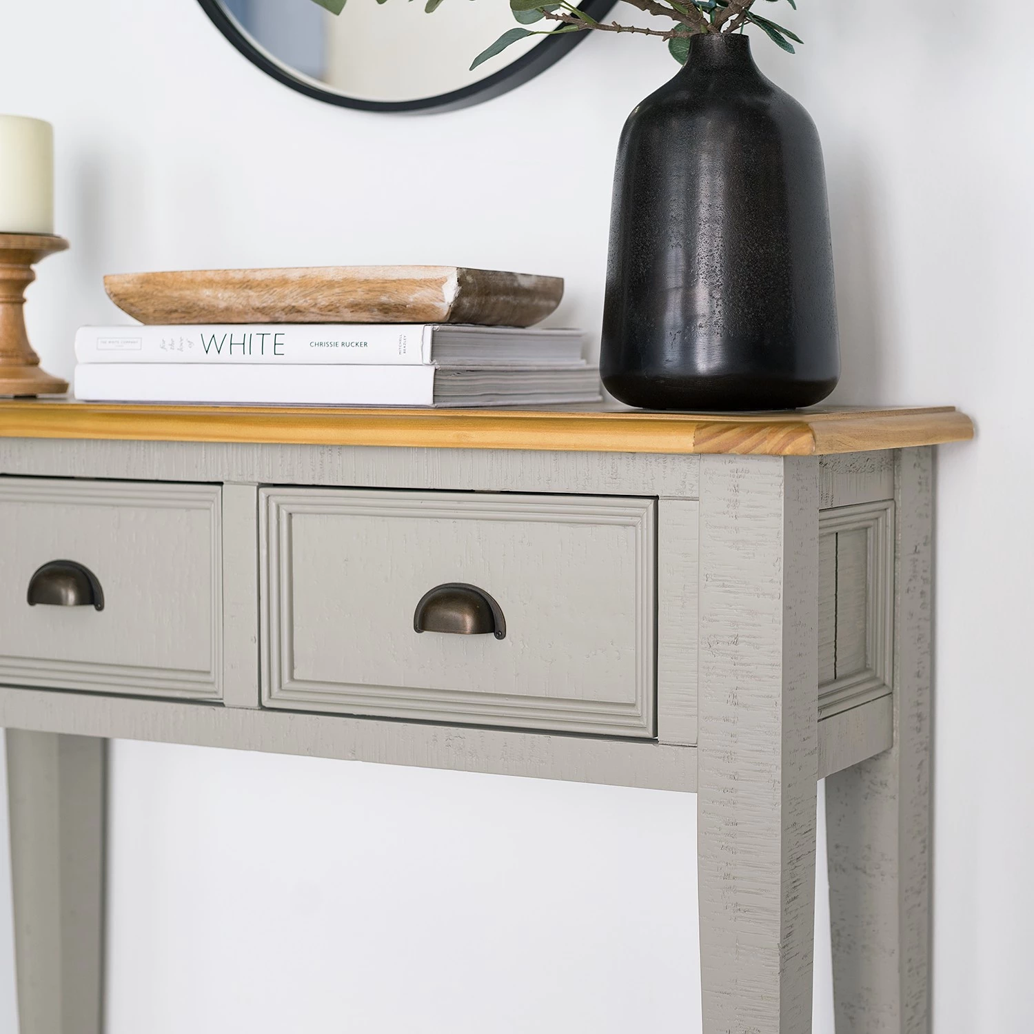 - Plateau supérieur : pin massif teinté