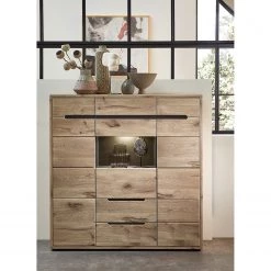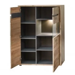 Fashion For Home Buffet haut Leox – Avec éclairage inclus – Graphite / Imitation chêne artisan