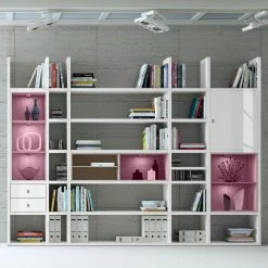 Loftscape Etagère XXL Emporior II – Blanc brillant / Imitation chêne de Sonoma – Avec éclairage