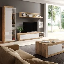 Loftscape Vitrine Shipley – Blanc brillant / Imitation chêne