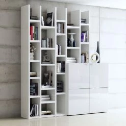 Loftscape Bibliothèque Emporior II – Blanc brillant – Largeur : 211 cm