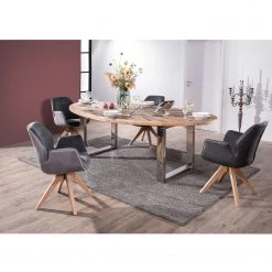 Maison Belfort Table Viello – Orme massif / Acier inoxydable – Orme / Acier inoxydable