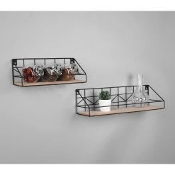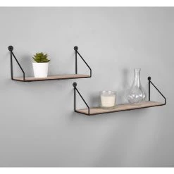 Loftscape Étagères murales Chevron Love (lot de 2) – Métal – Noir / Imitation chêne