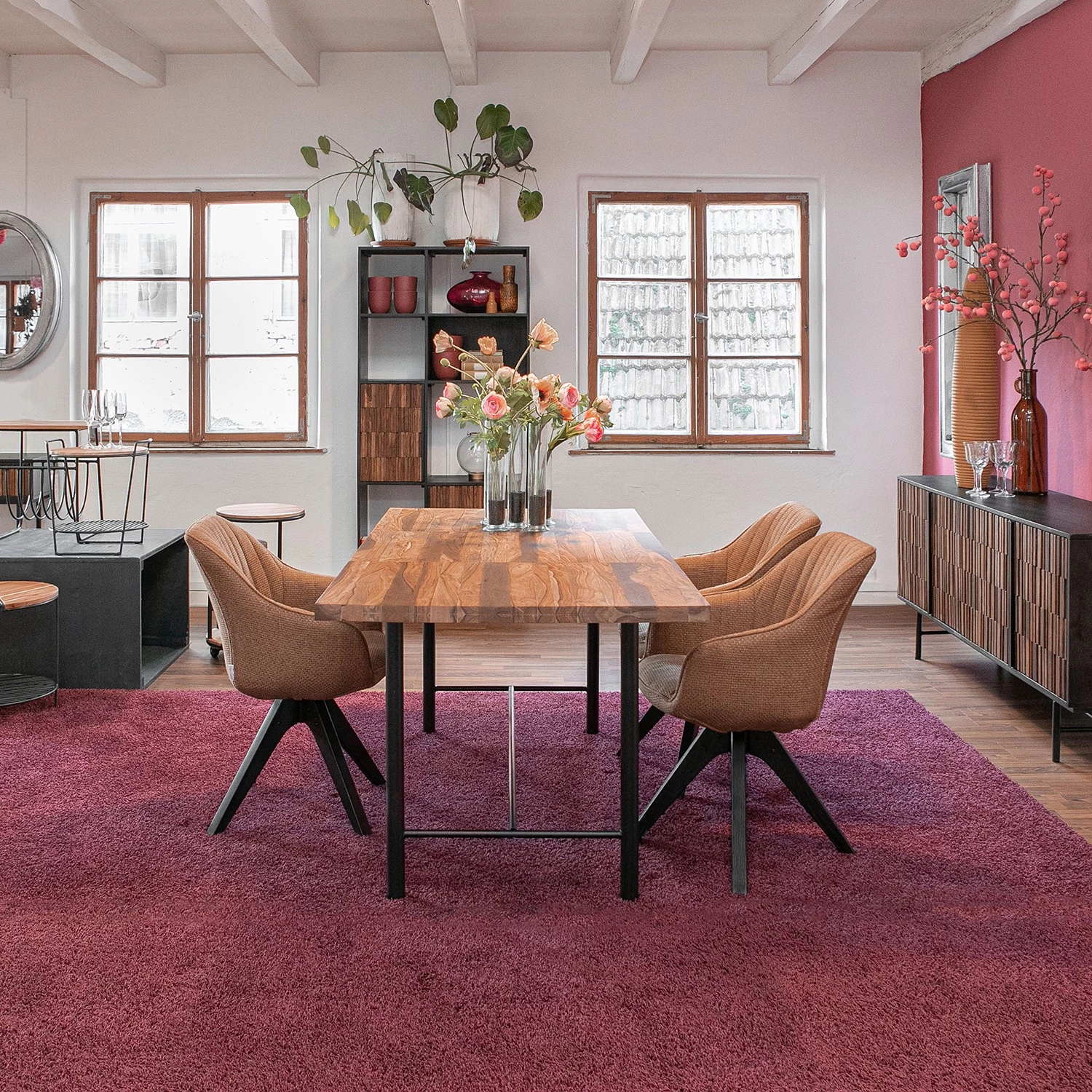 - Plateau de table : Sheesham massif teinté et verni