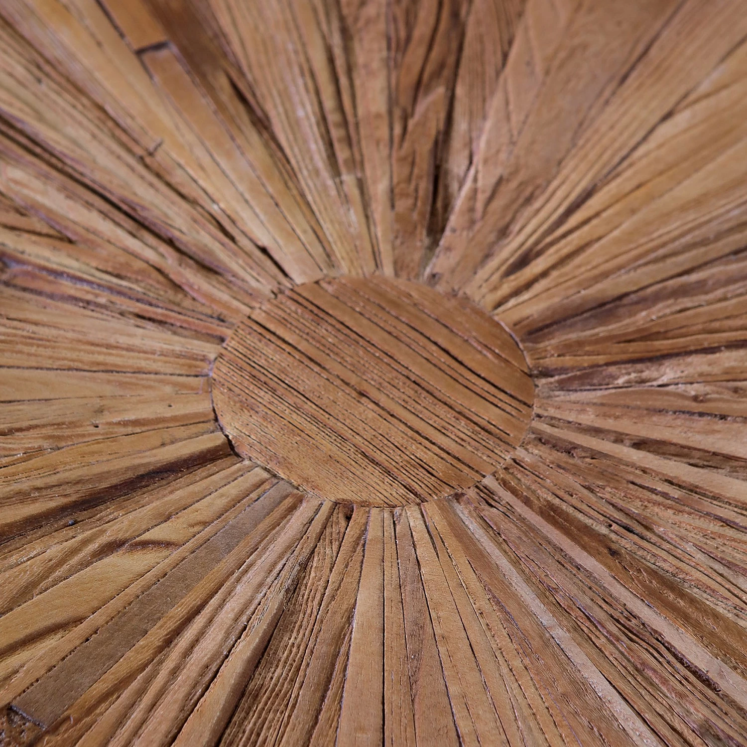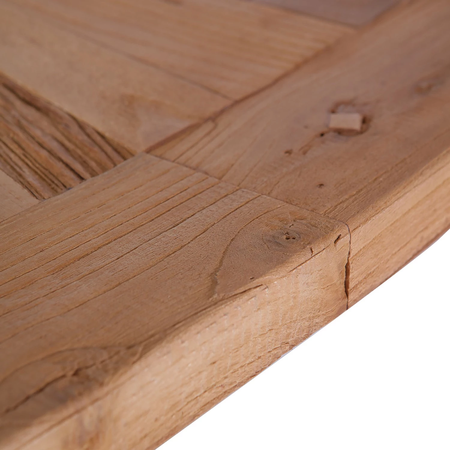 - Plateau de table : orme massif recyclé, teinté, verni et ciré