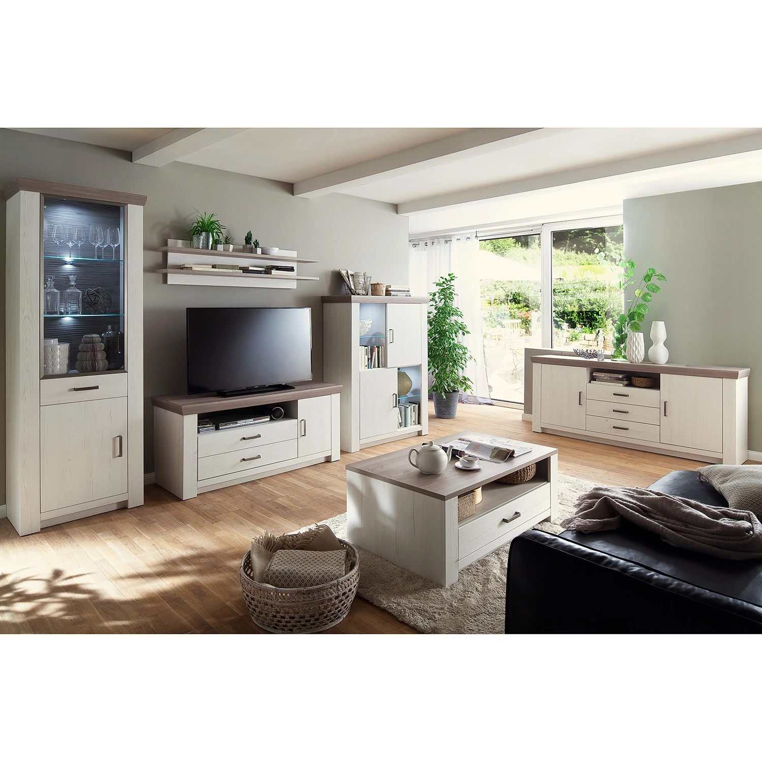 - Plateau supérieur et Panneau arrière des compartiments : imitation chêne Nelson